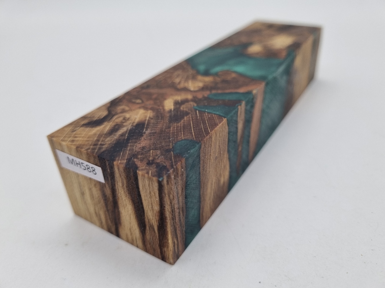 MH588 Buche grün 40mm x 30mm x 150mm. Das Holz ist teilweise von Termiten verformt und wurde vor dem gießen stabilisiert. Für eine perfekte Oberfläche finden Sie auch gutes Material im Shop. Beim Kauf erhalten Sie das abgebildete Stück.